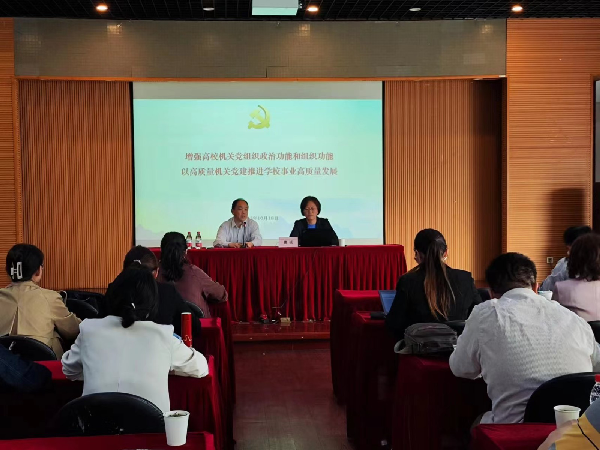 为深入开展学习贯彻习近平新时代中国特色社会主义思想主题教育,推进机关基层党组织标准化规范化建设,进一步增强基层党组织的政治功能和组织功能,提高党支部委员的政治素养和业务水平,10月19日下午,机关党委举行了机关党委党支部委员培训班第二次专题辅导报告,机关党委党支部副书记、支委委员参加了培训,上海师范大学校机关党委书记曹诚作了《增强机关党组织政治功能和组织功能,以高质量机关党建助力学校事业发展》的辅导报告。