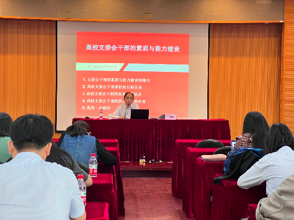 为推进机关党支部标准化规范化建设,进一步提升机关党支部委员的素质和能力,11月3日下午,机关党委举行了机关党委党支部委员培训班第三次专题辅导报告,机关党委党支部副书记、支委委员参加了培训。校机关党委书记王祖荣作了《高校支委会干部的素质和能力建设》的辅导报告。
