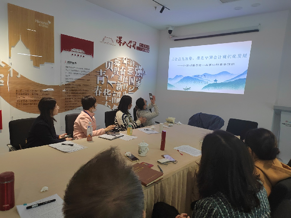 会议邀请博物馆宋小明老师作题为《以语言为津梁 推进中国会计现代化发展》的专题业务讲座。宋老师从潘序伦校长重视外语学习并成就其一生功业的独特视角,总结回顾了潘老学贯中西、推动中国现代会计事业发展的丰功伟绩。本次业务学习启发大家从全新的角度,打开了校史研究、文化传承的又一扇大门,大大开拓了文博工作者的视野和思路,为文博事业注入了新的活力。