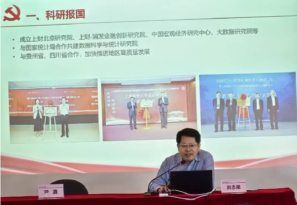 刘志阳教授作了题为“以党建业务双融合推进样板党支部高质量发展”的辅导报告。报告围绕“科研报国、服务争先、团队聚力”的“科研+”样板党支部建设思路,全面介绍了上海财经大学机关第十四党支部坚持胸怀“国之大者”主动服务国家和地方重大战略、管理服务“五联动”推动科研服务师生走深走实、强化理论领航谈心谈话交流业务素质提升三个方面全国高校党建工作样板党支部创建经验。