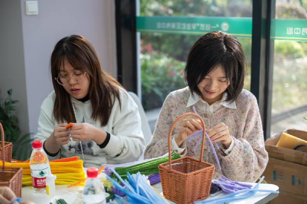 活动在轻松愉快的氛围中拉开帷幕,机关工会主席王祖荣致词欢迎新同事加入到机关大家庭,王祖荣表示机关工会致力于为大家提供最贴心的服务,以活动、讲座、联谊等多形式活动促进机关教职工的向心力、凝聚力,也希望新员工能够以机关为荣,支持机关工会工作。接着,经验丰富的手工老师耐心指导着每一位参与者,从扭扭棒的基本操作到花朵的巧妙构思,每一步都激发了大家的创造力与想象力。新员工们在动手实践中逐渐打破隔阂,相互学习、共同进步,现场洋溢着欢声笑语,团队氛围愈发浓厚。