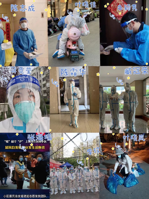 蒋竞莹同志连续13天,坚持参加社区核酸检测、抗原检测试剂发放、抗疫信息楼栋上传下达、物资分发等志愿者工作,充分发挥党员的先锋模范作用。臧冠荣同志主动到社区居委报道,先后5次参与社区志愿服务,承担分菜送菜、核酸检测、助老等志愿者工作,以实际行动践行党员的初心使命,发挥党员作用。朱颖隽同志积极报名参加社区抗疫志愿者队伍,先后5次为居民送菜搬运快递,分发抗原试剂,参与核酸检测等服务,与社区工作者一道为社区安全防护奉献力量。叶晓岚同志除了居家办公完成项目申报服务工作外,积极参与社区的志愿者工作,帮助居民发送蔬菜和药品、为居民分送快递等工作,为社区居民正常的生活秩序尽一份爱心。