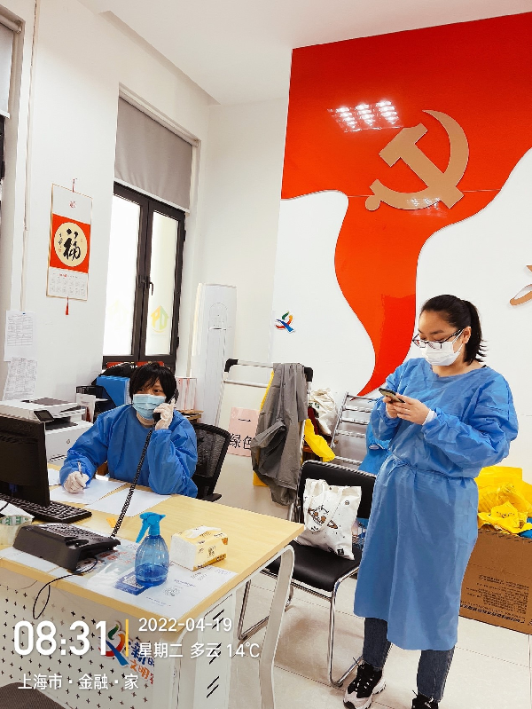 为打赢这场疫情防控攻坚战,响应上海市机关和企事业单位干部下沉一线到群众最需要的地方去的号召,4月15日以来,在学校党委的领导下,在机关各党支部的配合下,机关党委选派出符合条件的34名干部下沉到街镇、居村委一线,罗娇就是其中一员。