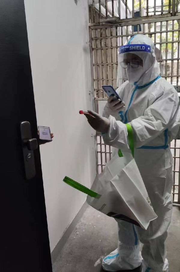 许冰作为党员志愿骨干,承担了小区物资搬运工作,“我选择轮晚上最后一班岗,一般要搬40-50趟物资。”他所在小区从早八点到晚八点安排了六班人员进行轮岗,他总是选择最晚最忙的一班,帮小区居民把生活物质搬运至家门口。他还负责两栋楼的核酸抗原工作,其中一栋楼有人核酸异常,他穿好防护服毅然陪同医护人员上门做核酸,并协助做好该楼36户101人的扫码登记工作。同时,他还主动报名参加临时突击队,随时准备出发参与新冠病毒感染者的集中转运工作。