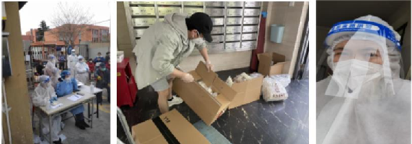支部其他党员也在“台前”或“幕后”以各种方式助力社区抗疫,如张立新老师在社区积极宣传防疫政策,为社区抗疫提供合理化建议;童杰老师积极参加新冠抗原试剂自测培训,参与所在小区的首次抗原检测;陈春华老师辅助社区志愿者做好物资采购信息统计和楼道物资分发;程肖芬老师指导社区年青人做饭,为疫情期间“吃什么”“怎么吃”提供温馨而实用的建议。