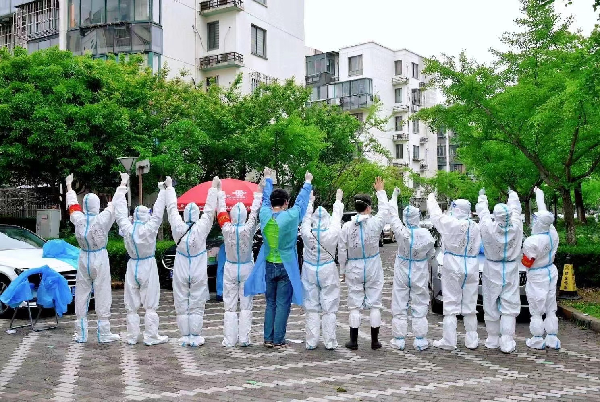 刘贤伟四岁的女儿在大人的耳濡目染下,也知道外面病毒危害的严重性。有一天看到爸爸穿着党员志愿者服出门时,她指着党徽说到“爸爸,你是党员,加油!”。这让刘贤伟更加坚定地投入到抗疫工作中。在核酸排队的时候,女儿认出了第一次穿上大白的爸爸,隔着两米远,给爸爸竖了一个大拇指,虽然是阴雨霏霏,但格外温暖。