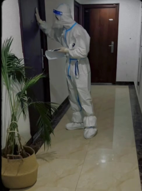 配合进行核酸检测及抗原试剂发放。因为人数多且场地小,为了不造成拥挤,采用逐层敲门下楼的方式进行,保证不遗漏一户,一人。抗原试剂也是需要逐层上门发放,测好后再逐层回收,向管委会报告结果,每次基本都是顺着楼梯全副武装拎着东西正序或倒序爬一遍楼。